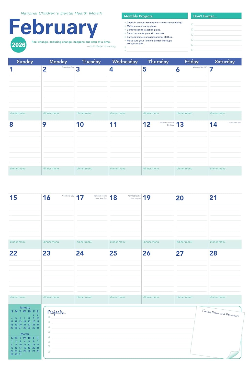 Extra-large grid with plenty of writing space for planning projects and tracking appointments, birthdays, school outings, and other important events15″ x 11″ trim size with wire-o spiral binding for sturdy hanging on walls or refrigeratorsOver 175 colorful stickers with quality adhesive and reminders for hardworking parentsOver three pages of tear-off perforated lists in the back for weekly grocery shopping, meal planning, and to-dosEnvironmentally responsible, FSC certified and smudge-free paperSimple design for tracking bill-paying, shopping, chores, and all the details of daily life with tools for planning vacations, holidays, and back-to-schoolThe perfect format for assignments, building your own homeschool planner, and organizing at-home virtual learningFind important phone, school, and emergency numbers quicklyKeep vital medical information handy for everyone in the familyMonthly motivational quotes and self-care affirmations reminding you to live your best #momlifeHelpful tips each month to make home and family to-do lists a breezeHolidays, moon phases, and observancesYear at a glance