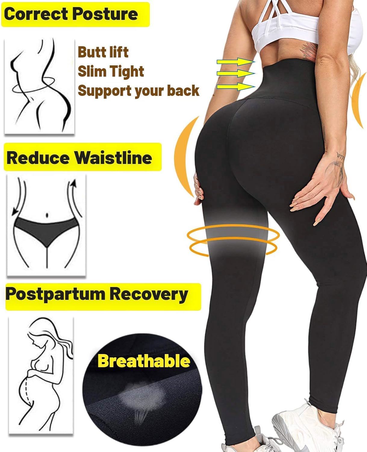 With an innovative design which features 3 rows of hooks in the abdomen area providing extra firm control on your tummy, these high waisted leggings enjoy extra compression for lower abs and have an instant slimming effect!It’s perfect for yoga, exercise, running, jogging, hiking, bending or stretching and weightlifting.Can be used for postpartum belly abdomen corset leggings as well.Besides, fashion design makes you more attractive, wearing high waisted yoga pants will make you look more fashionable.