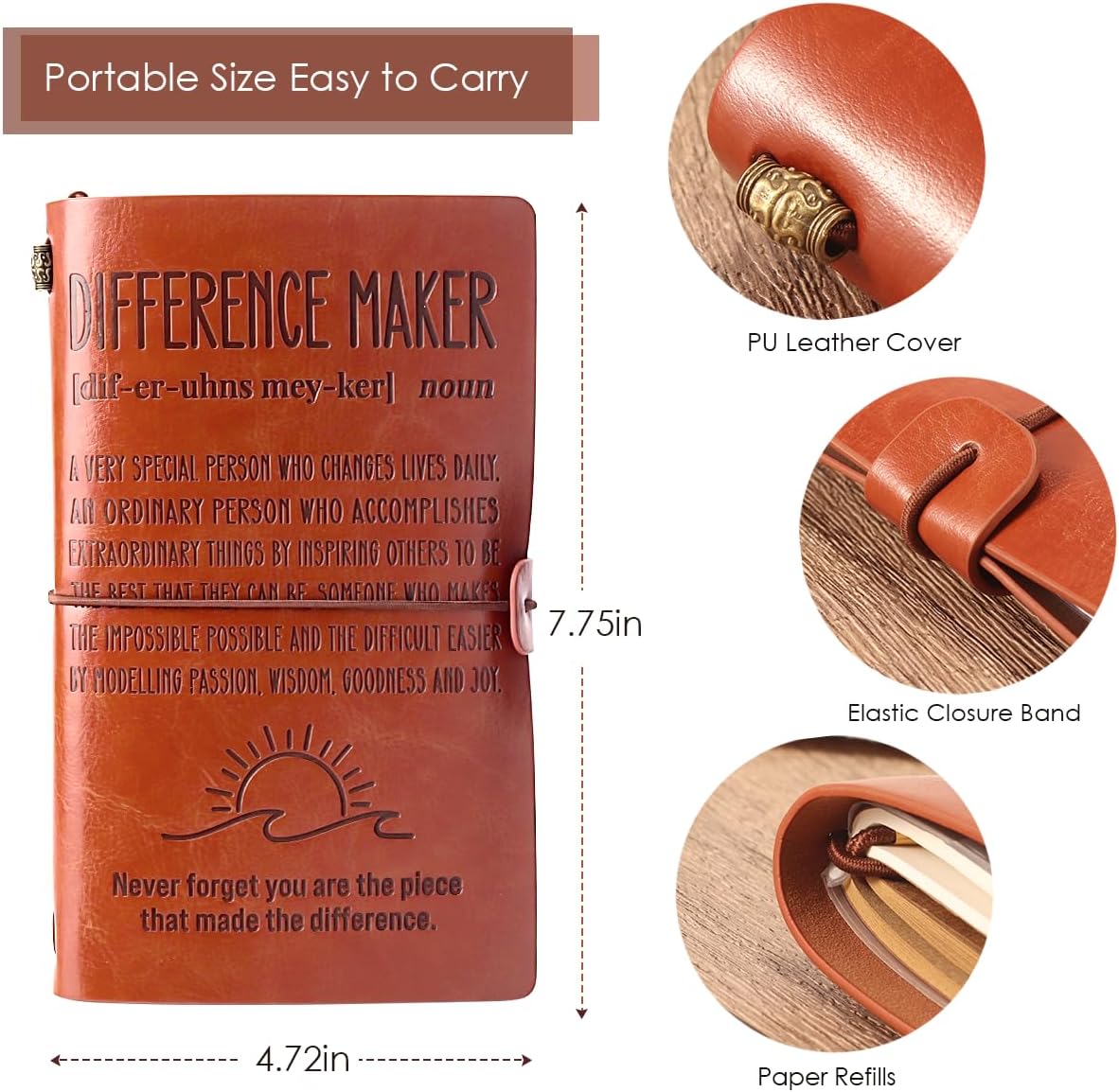 【Versatile & Inspirational Gift for Any Occasion】 This stylish journal for women and men is ideal for birthdays, Christmas, and graduation gifts for teachers. Whether you need a cool gift for a coworker, a leadership gift, or a difference maker notebook to encourage someone, this leather-bound journal is a fantastic choice. Suitable for parents, colleagues, employees, managers, or coaches, it serves as a daily planner, gratitude journal, or business notebook. A meaningful and practical way to uplift and inspire others.