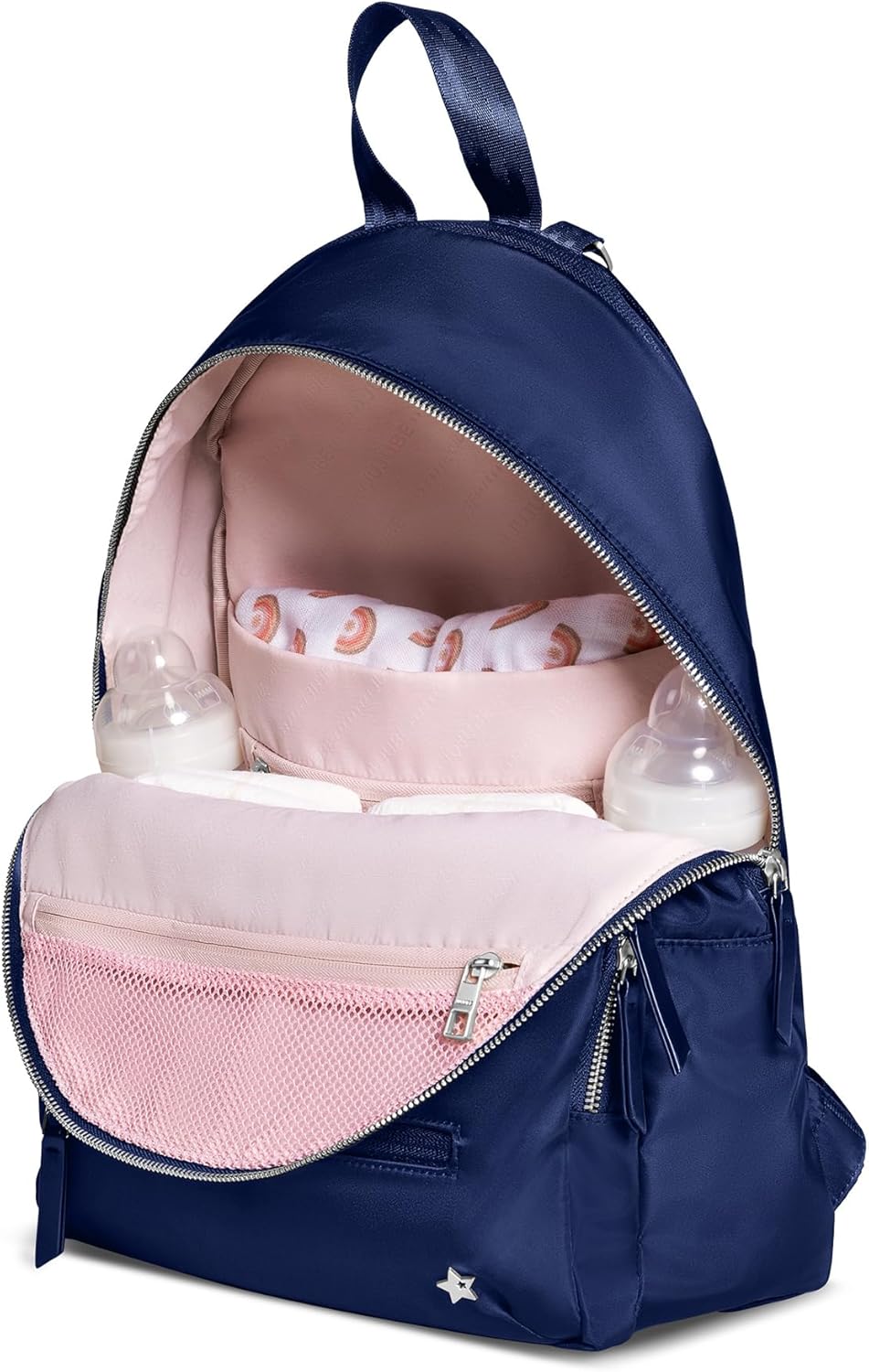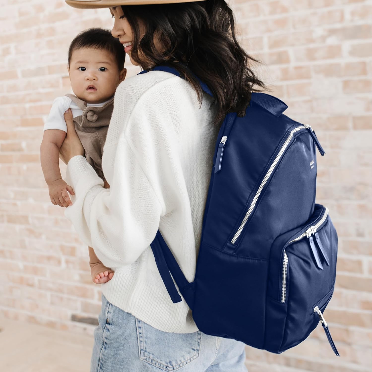 As a mom, I love the JuJuBe New Everyday Diaper Bag Backpack! It’s a lifesaver with all the pockets keeping everything organized. No more digging for wipes or pacifiers during diaper changes. The backpack straps are comfy, and it even hooks onto my stroller. It’s stylish enough for mom and dad to carry, and the neutral navy goes with everything. Plus, it holds tons of stuff – perfect for busy days out with my little one.