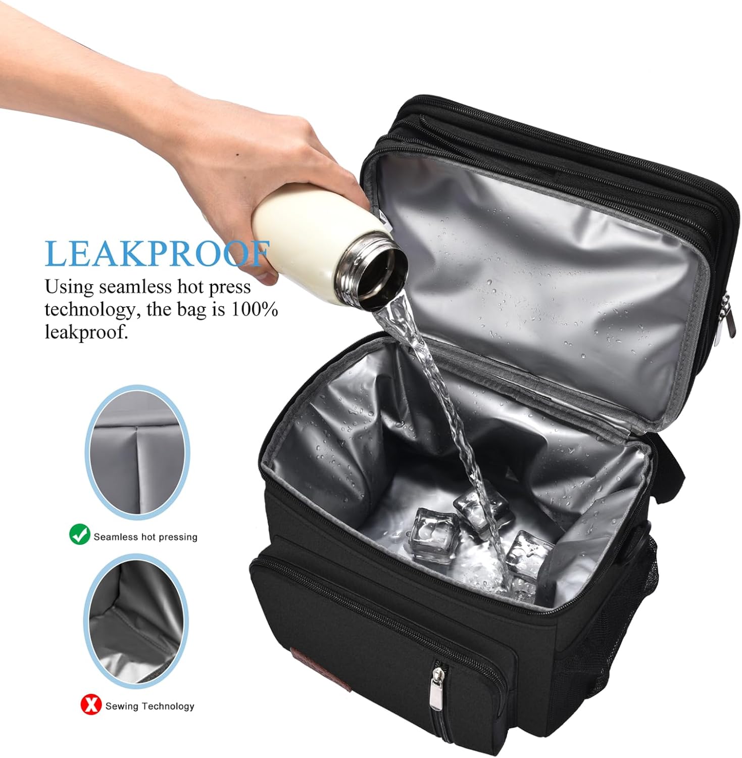 Large-Capacity Double-Layer Lunch Bag: It measures 10.1″ x 7.7″ x 9.1″. Expanded size: 10.1″ x 7.7″ x 10.3″. Different foods can be placed on the upper and lower layers to prevent food from being piled up and squeezed. The large-capacity lunch bag can easily hold all your beer, snacks, drinks, sandwiches, fruits, lunch boxes