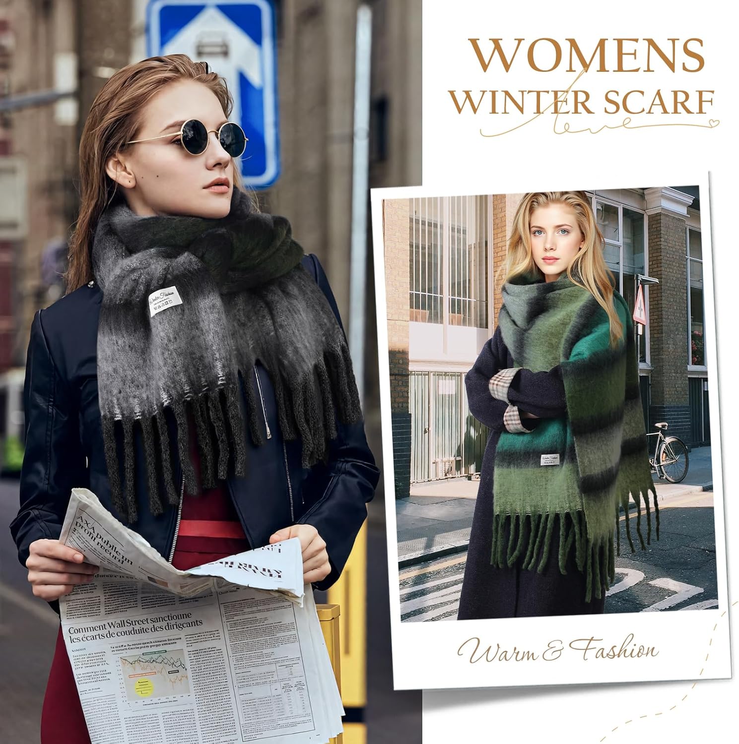 There are many ways to wear this scarf, can be used as a cape, a blanket,or a shawl. Different ways of wearing give you different styles, and the scarves are long and wide enough for you to explore new ways to wear them.