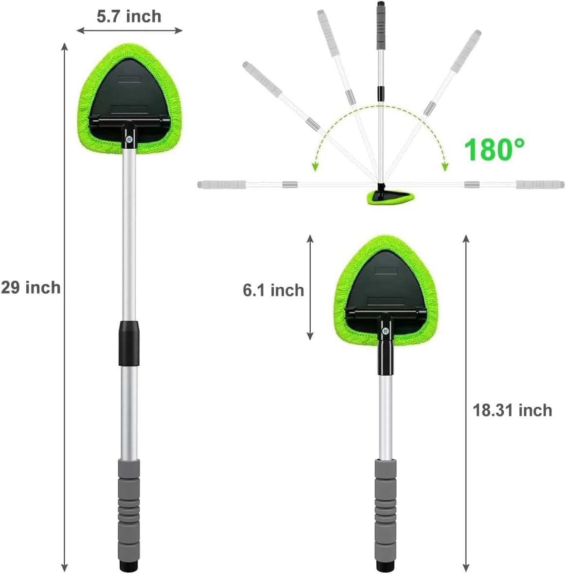 ✅Full Coverage for Perfect Visibility – Now with an extended reach ideal for larger vehicles. The upgraded large 5.7″ W × 6.1″ L 180° swivel head delivers maximum contact with glass surfaces, while the extendable 18.31″–29″ handle easily reaches deep corners and even the roof areas of bigger cars like SUVs, trucks, vans, and RVs. A must-have tool for any car detail cleaning kit, perfect for both vehicles and home windows.🔄